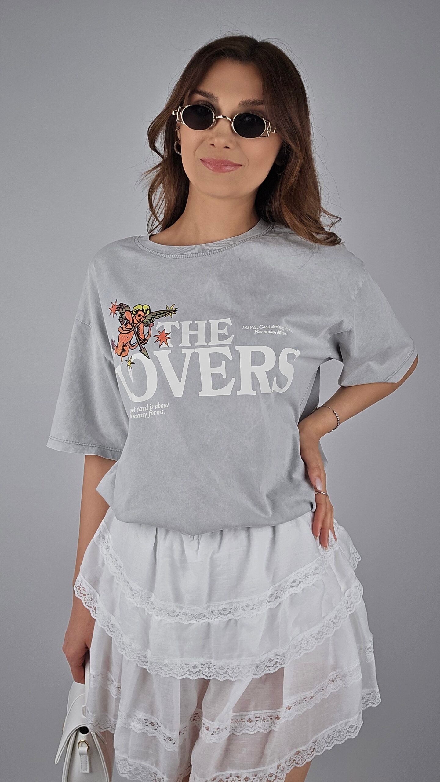 The Lovers Baskılı Basic T-shirt – Gri