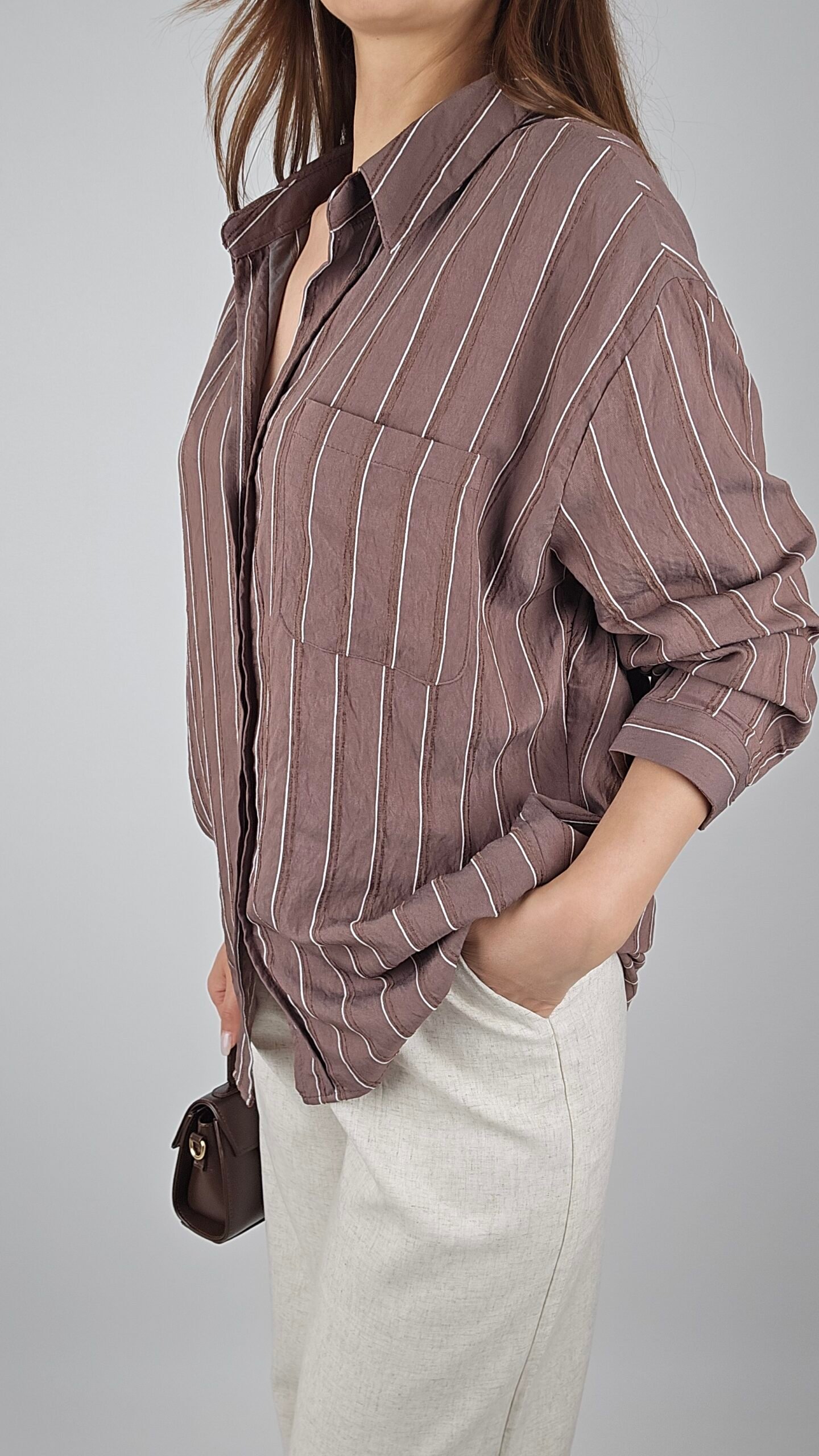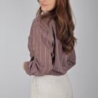 Beyaz Çizgili Kahverengi Oversize Gömlek