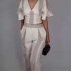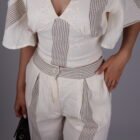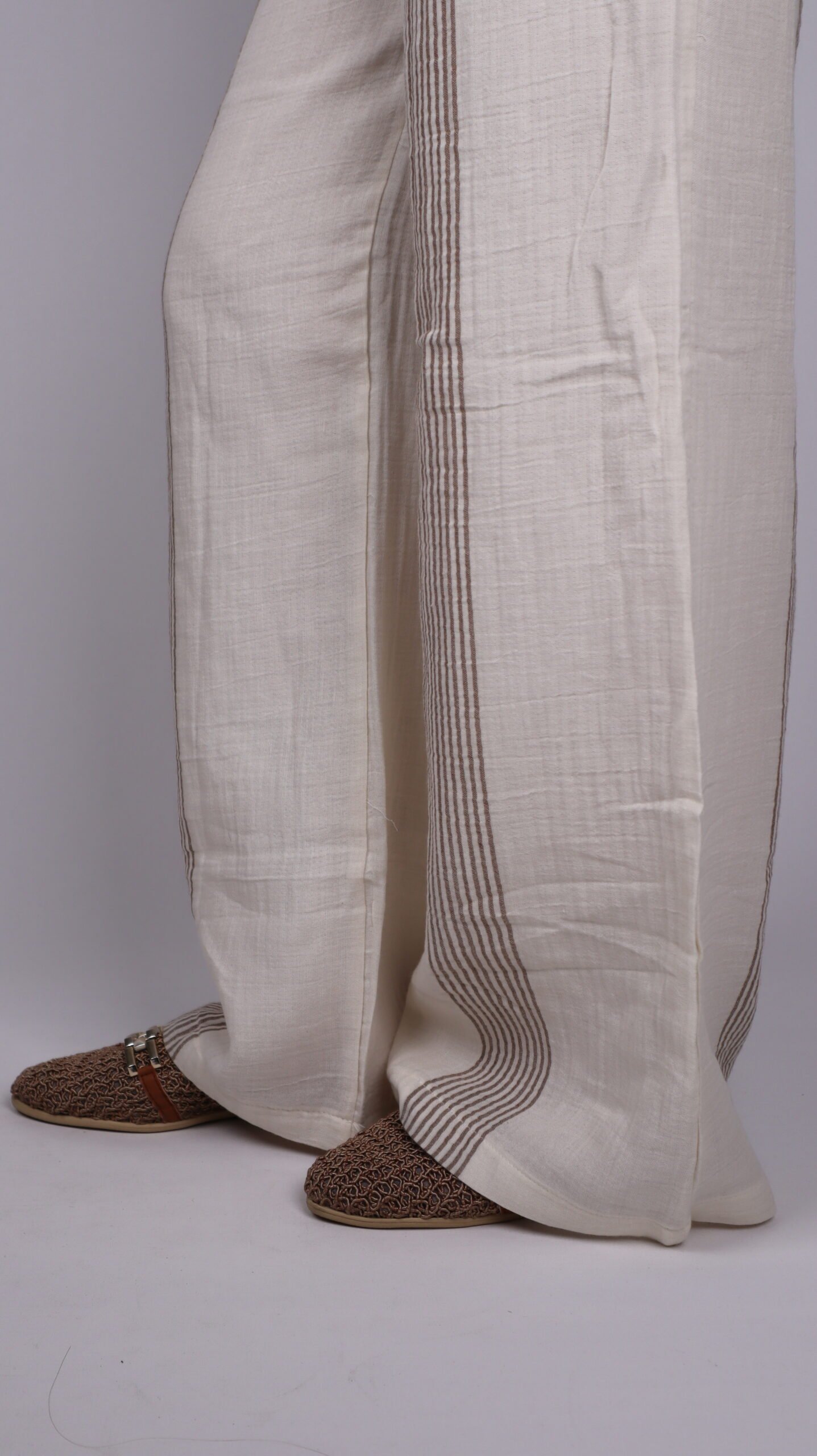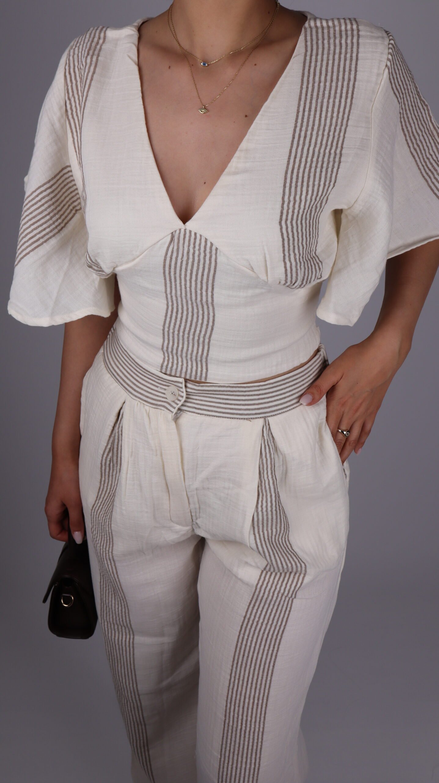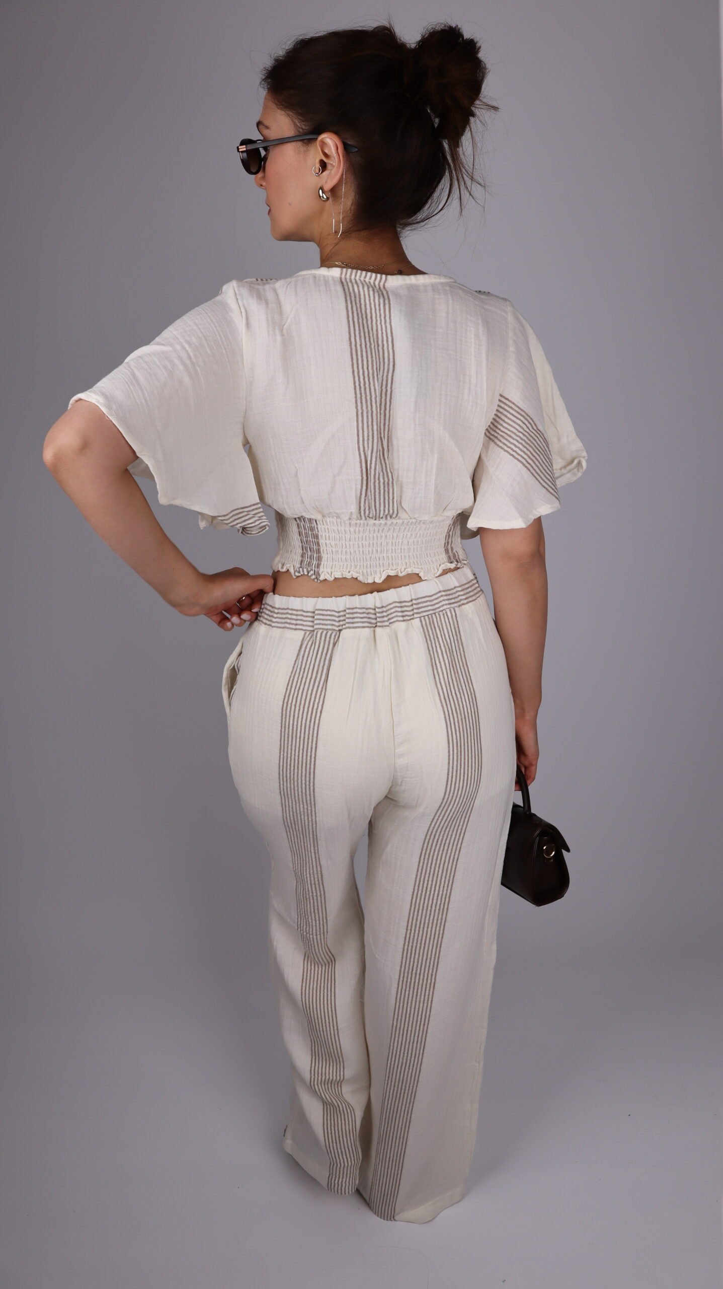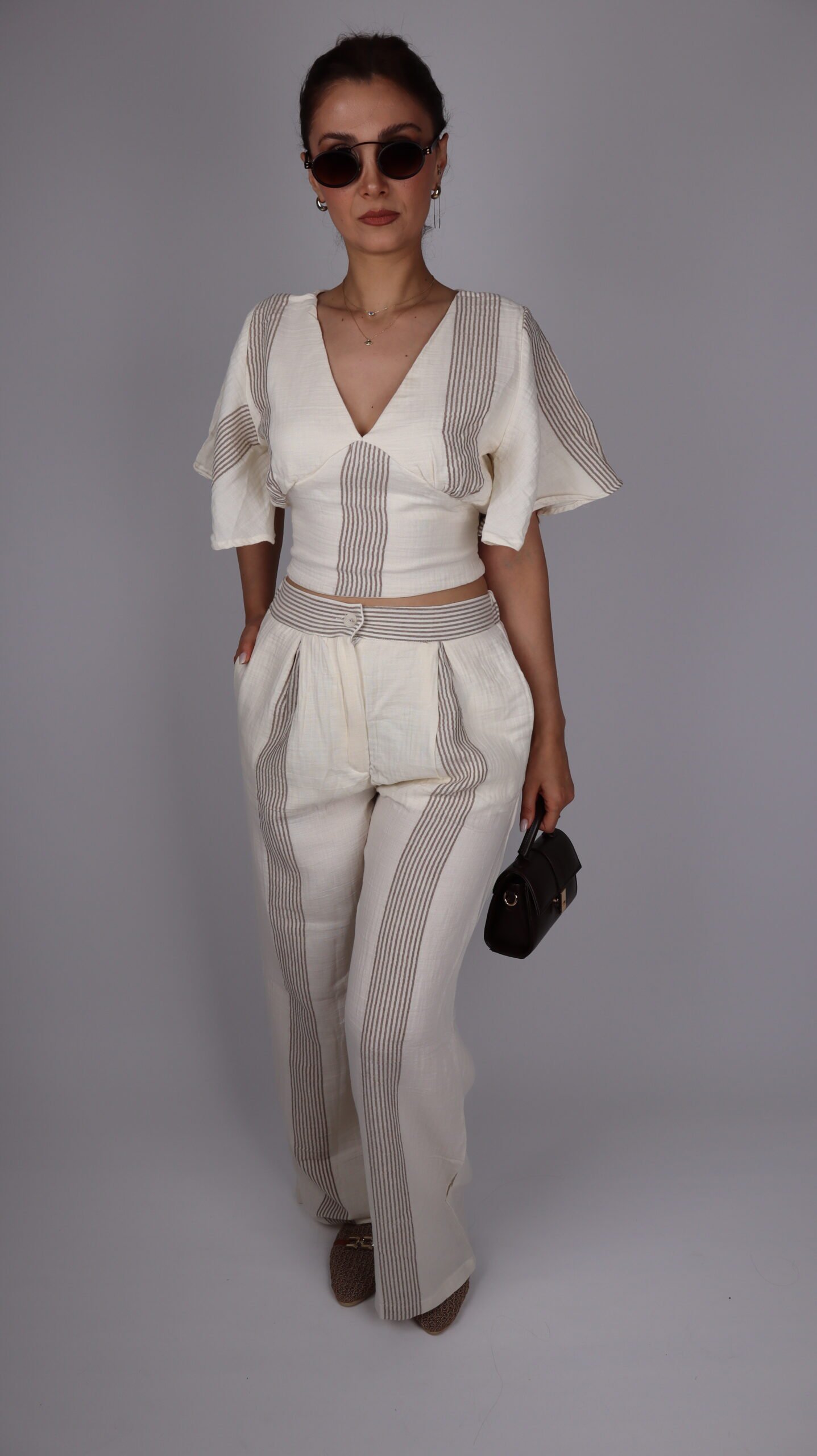 Müslin Kumaş -Astarlı Kahve Çizgili Takım